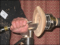 Ron showed a couple of YouTube videos (created by Chris Parsons) to show the process of making a lace bobbin - apparently the spindle speed is around 6,000 rpm!