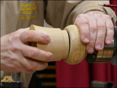 Les stated that his second demonstration was going to show how his multi-purpose tool could be used to judge the wall thickness of a bowl. There were some furrowed brows (of disbelief?) in the audience.