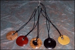 Now how about some pendants to add the finishing touch to that glamorous outfit. Starting from the left, these are made from Lacewood, Padauk, African Blackwood (branch wood), African Blackwood again and Pau Amarello.